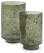 Create an even cozier ambiance in your home with this candle holder set. Their green sanded glass makes the soft glow of electric or real candles all the more beautiful. Stunning when displayed as a duo or standing alone, these holders are a simple way to upgrade the style of your space.