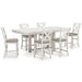 | Details | D642-32: Made with rubberwood solids, ash veneer and MDF substrates, Antiqued white finish with wood grain texture, Tabletop with planked effect, Two 12” extension leaves, Table extends by pulling both ends and dropping in leaf, Assembly required, D642-124: Made with wood, Antiqued white finish with wood grain texture, Foam cushion with polyester upholstery, Nailhead trim, X-back, Assembly required, | |