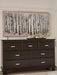 Feast your eyes on this richly versatile dresser. Its traditional-inspired dark brown finish effortlessly blends with contemporary bright nickel-tone pulls to create a stunning look that's not too stuffy or too trendy. Spacious drawers offer plenty of storage for your wardrobe and spare bed linens.