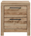 Inspired by natural beauty, refined to perfection. This nightstand brings cozy outdoor vibes to your bedroom with its warm and inviting golden rustic finish. Antiqued gunmetal handles adorn the two drawers on its framed front for an industrial touch, while USB charging adds a high-tech element to the simple, streamlined design.