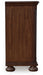 Details Made with hardwood solids, cherry veneer with MDF substrates, decorative cast resin and furniture grade plastic components, Cherry brown finish, Decorative metal drawer pulls with dark bronze-tone finish, 7 drawers with fully finished interior, dovetail construction and ball-bearing side glides