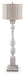 Details Made of polyresin with drum bell fabric shade, Antiqued white finish, 3-way switch, 1 E26 socket, type A bulb recommended (not included); 150 watts max or LED equivalent; UL Listed, Assembly required