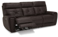 The solid, sumptuous profile of the Aedon creates a seat you can't wait to sink into. High-density foam seating and blown-fibre backs accented by a double topstitch pull creates visual drama and an inviting embrace, framed by a stylized pad-over arm. Wall- hugger technology provides a full recline with only 4" of wall clearance. Movements are activated by a convenient brushed-metal switch that includes integrated USB charging. This signature transitional look gives the ease and comfort of motion, with clean styling that will suit the décor of any home.
