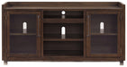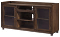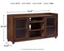 | Details | Made of acacia veneers, wood and engineered wood, Oiled walnut-tone finish, Dark bronze-tone metal hardware, 2 glass-front cabinets, each with an adjustable shelf; adjustable/removable center shelf, open cubby and cutouts for wire management, Compatible with W100-02 and W100-101 electric fireplace inserts (sold separately), Assembly required | |
